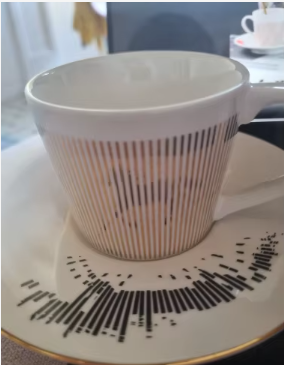 Sì, l'effetto anamorfico appare non appena la tazza è posata, indipendentemente dal liquido.